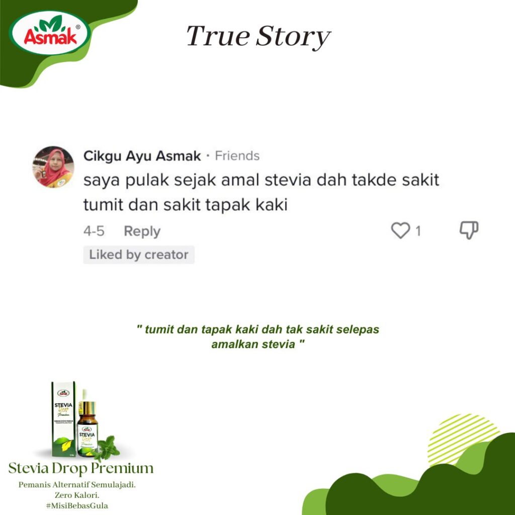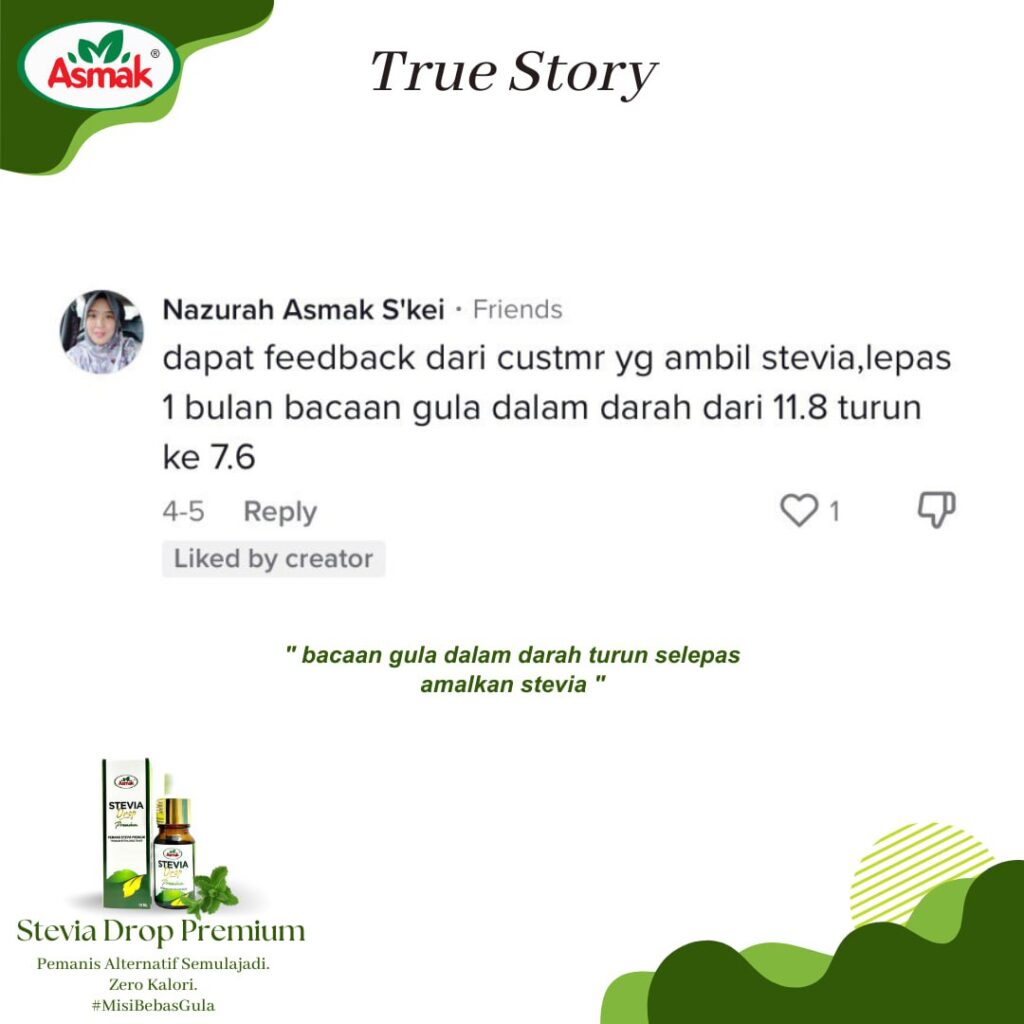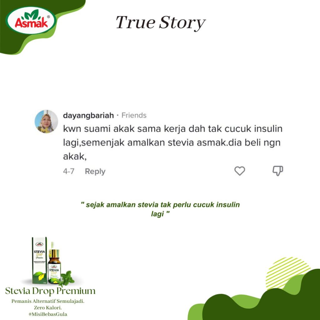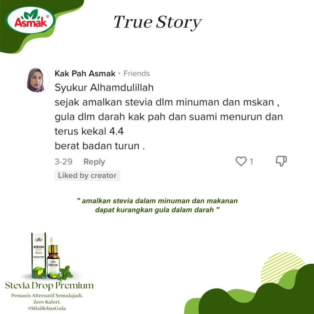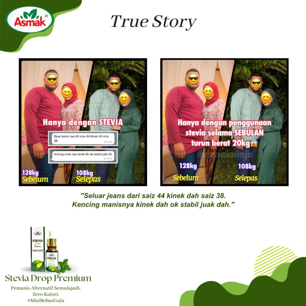 produk kesihatan yang membantu mereka yang ingin menjaga pemakanan untuk menjaga kalori walaupun makan & minum yang manis. Tidak seperti produk kesihatan yang lain, Stevia Drop Premium mempunyai kandungan ekstrak Monk fruit yang mana tidak ada rasa payau atau kelat (after taste) dan tidak ada campuran pemanis tiruan seperti sukralosa.